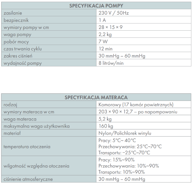Materac służy do wspomagania profilaktyki i leczenia pacjentów, u których występuję ryzyko powstawania odleżyn.